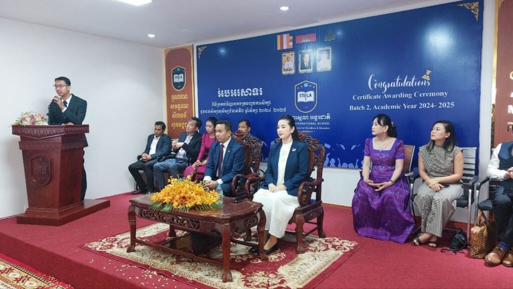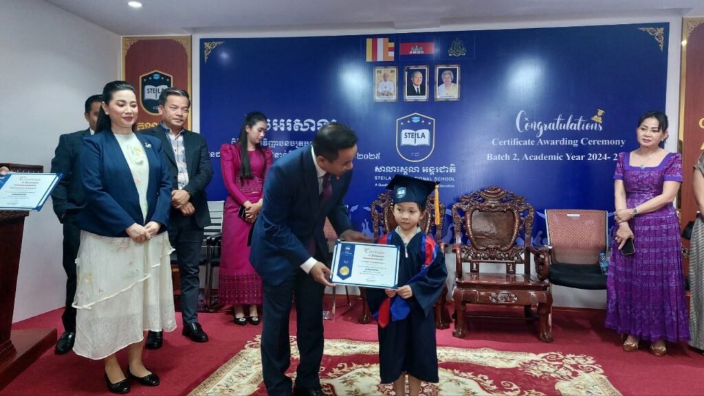 ភ្នំពេញ: នាព្រឹកថ្ងៃទី ៧ ខែមិនា ឆ្នាំ២០២៦ សាលាស្តេលា អន្តរជាតិ បានប្រារព្ធពិធីប្រគល់វិញ្ញាបនបត្រ បញ្ចប់ការសិក្សាជូនដល់សិក្សានុសិស្សជំនាន់ទី២ ឆ្នាំសិក្សា ២០២៤ – ២០២៥ នៅក្នុងបរិវេនអគាសិក្សា សាលាស្តេលា អន្តរជាតិ ស្ថិតតាមបណ្ដោយផ្លូវហានណូយ ក្នុងភូមិ បន្លាស្អិត សង្កាត់ឃ្មួញ ខណ្ឌសែនសុខ រាជធានីភ្នំពេញ ក្រោមអធិបតីភាពដ៏ខ្ពង់ខ្ពស់របស់ ឯកឧត្តម បណ្ឌិត ឃី សុវណ្ណ រតនា រដ្ឋលេខាធិការនៃក្រសួងការបរទេសនិងជាសហប្រតិបត្តិការអន្តរជាតិ និងលោកជំទាវ ។