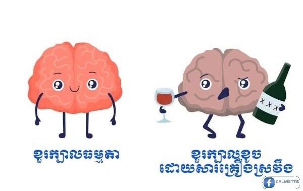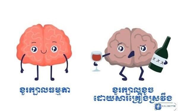 ពេលមនុស្សម្នាក់ទទួលទានគ្រឿងស្រវឹង កោសិកាខួរក្បាលអាចរងផលប៉ះពាល់ដោយផ្ទាល់ទោះវាហាក់ធ្វើអោយអ្នកទទួលទានមានអារម្មណ៍ល្ហែល្ហើយមួយគ្រា តែវាបណ្តាលអោយកោសិកាខួរក្បាល យើងដំណើរការក្នុងស្ថានភាពយឺតជាងធម្មតា បន្ទាប់មកអាចប៉ះពាល់ដល់កោសិកាខាងគំហើញ ( ស្រវាំងភ្នែក) និយាយត្រដិត ដំណើរទ្រេតទ្រោត និងអាចរហូតដល់បាត់បង់ស្មារតី។
