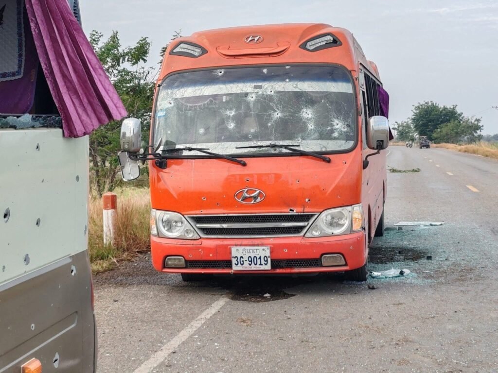 រថយន្តក្រុង២គ្រឿង ត្រូវបានទាហានថៃ ប្រើដ្រូនទម្លាក់គ្រាប់ចំ កាលពីវេលាម៉ោង ១២រំលងអាធ្រាត្រ ឈានចូលថ្ងៃ០៩ ខែធ្នូ ឆ្នាំ២០២៥ បណ្តាលបាត់បង់ជីវិតមនុស្សប្រុស២នាក់ ស្ថិតនៅចំណុចស្ពានលេខ៨ ផ្លូវ៥៦A ស្រុកថ្មពួក ខេត្តបន្ទាយមានជ័យ។