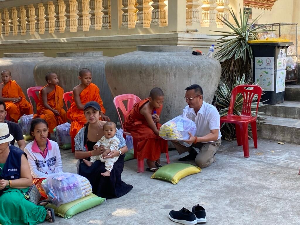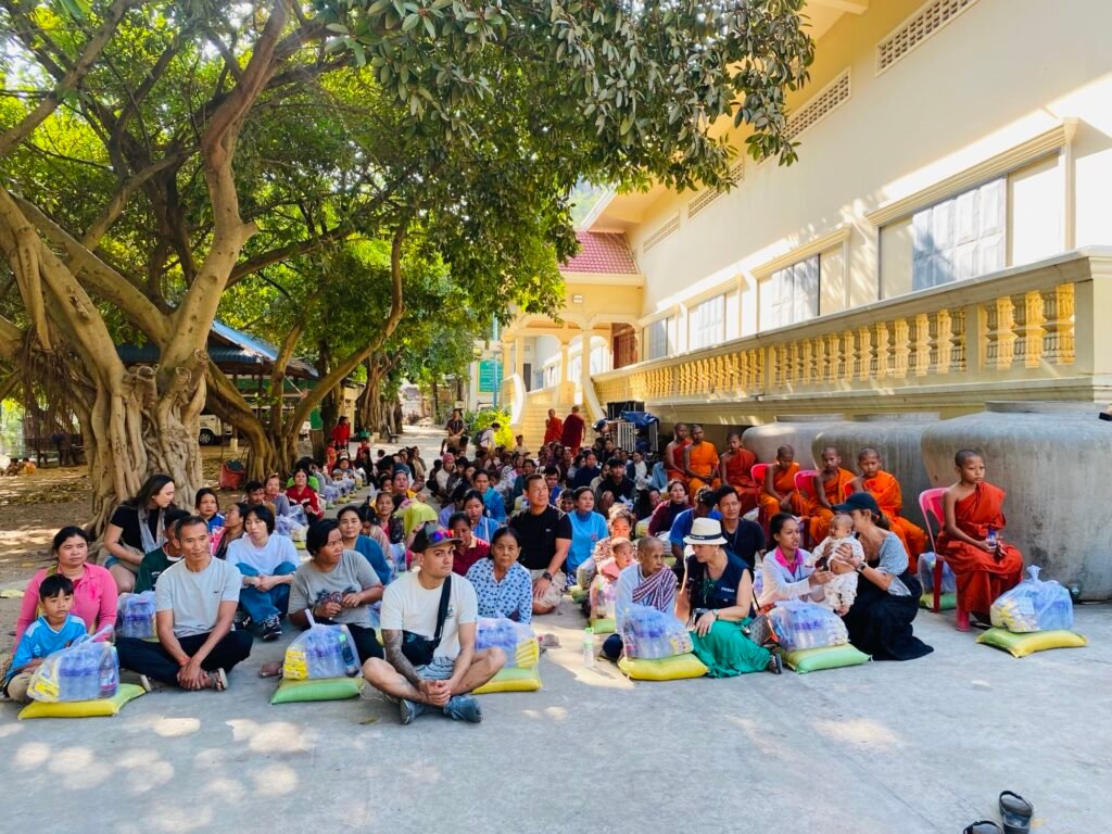 សរុបជាប្រមាណជាង៣០០គ្រួសារ ស្ថិតនៅ វត្តសោភណារ៉ាមសំរោង ក្នុងភូមិសំរោង ឃុំសំរោង ស្រុកអូជ្រៅ ខេត្តបន្ទាយមាជ័យ ជនភៀសសិតដែលទទួលបានក្នុង មួយគ្រួសាៗ ទទួលបាននូវ -អង្ក១០ kg -ទឹកស៊ីអ៉ីវ១ដប-ទឹកត្រី១ដប -ម៉ី១០កញ្ចប់-ទឹកបរិសុទ្ធ១យួរថ្នាំពេទ្យមួយចំនួន និងបានប្រគេនបច្ច័យដល់ ព្រះគ្រូ ចៅអធិកាវត្ត ចំនួន១០០ដុល្លា និងថ្នាំពេទ្យមួយចំនួនទៀតផងដែ។